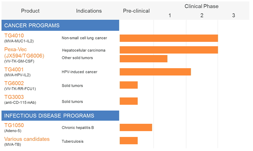 Come si può notare dall’immagine c’è un terzo programma in fase clinica. Non eccitatevi, si tratta anche in questo caso di un assetto dal dubbio valore, concesso a Roche nel 2007 e rispedito al mittente 4 anni dopo. TG4001 è pronto per una fase 3 da circa 3 anni, quindi immaginate quanto interesse ci sia sul programma…
